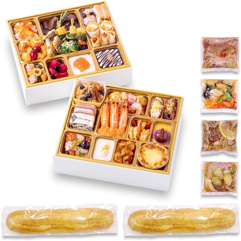 | 商品名 | 【Amazon.co.jp限定】 ビストロ おせち 「ナルシス プラス」 洋風 2段重 2-3人前 アヒージョ 4種類セット おせち料理 冷凍 |